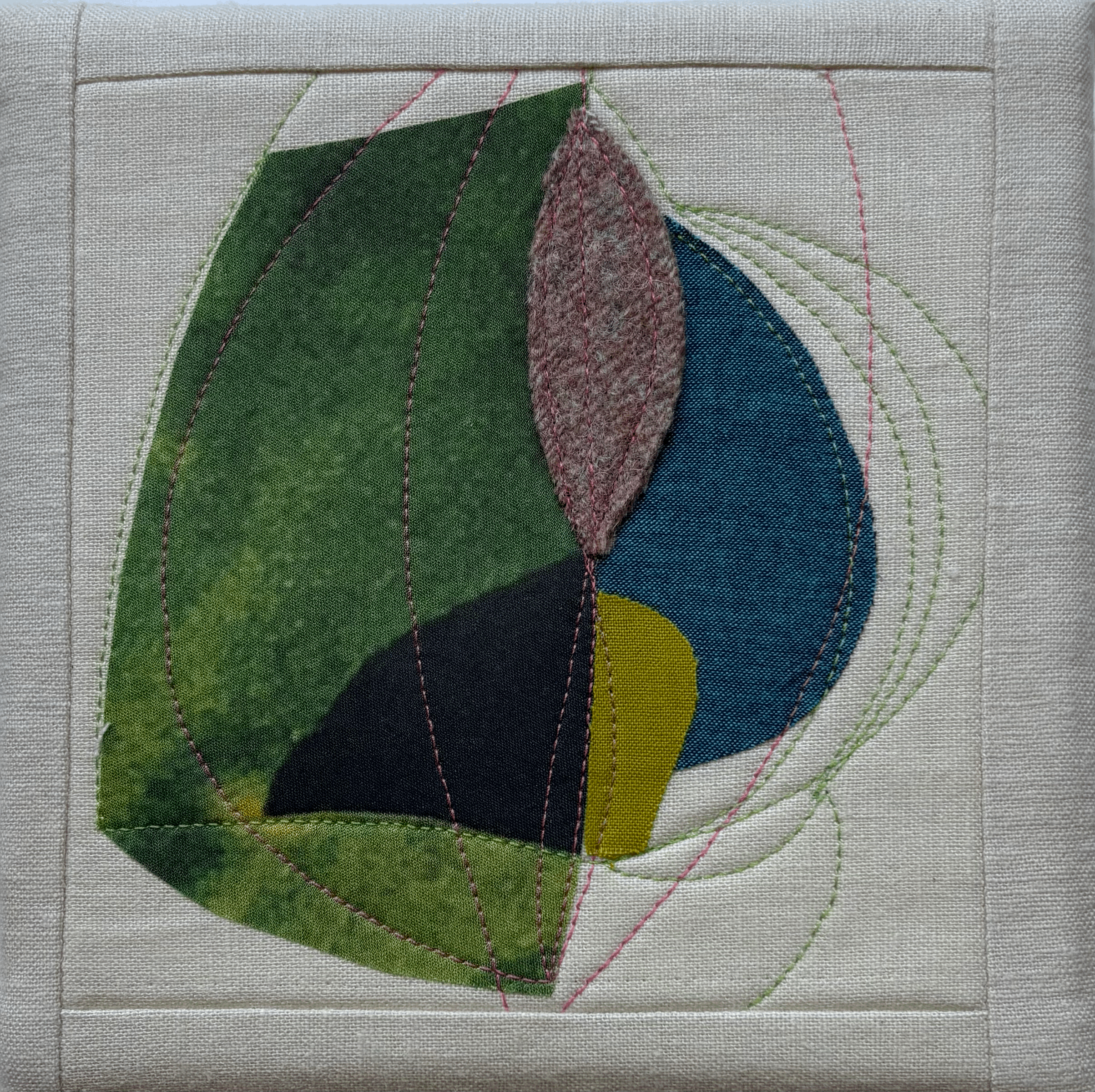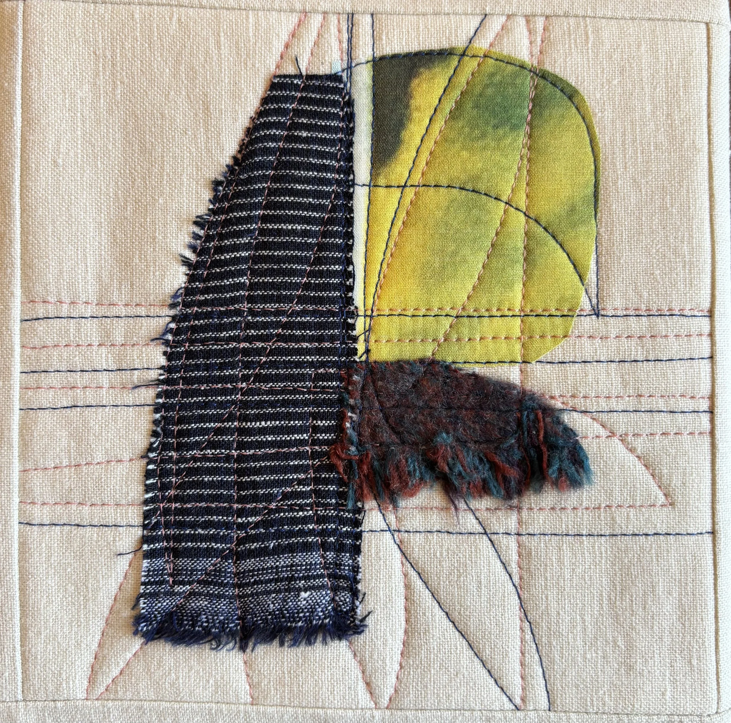 Clothwork - mixed fiber, appliqué, 6” x 6x” $225